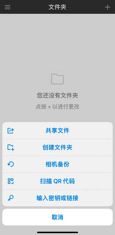 点击程序右上方的“+”,选择“输入密钥或链接”。